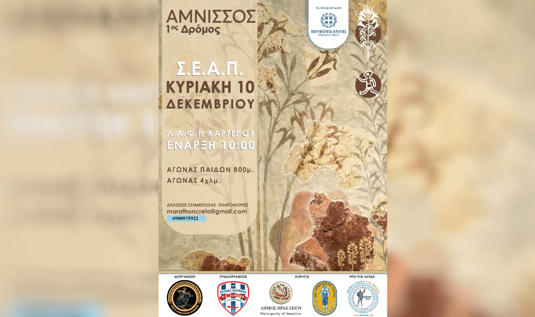 Ο Σύλλογος Μαραθωνοδρόμων Κρήτης «Ίκαρος» συνδιοργανώνει με την Περιφέρεια Κρήτης τον αγώνα δρόμου «Αμνισσού».