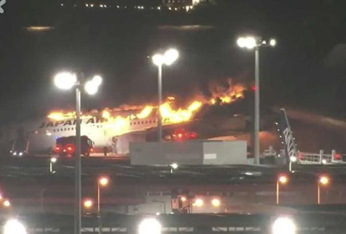 Σύμφωνα με τις πρώτες πληροφορίες το αεροπλάνο συγκρούστηκε την ώρα της προσγείωσης με αεροσκάφος της ιαπωνικής ακτοφυλακής.