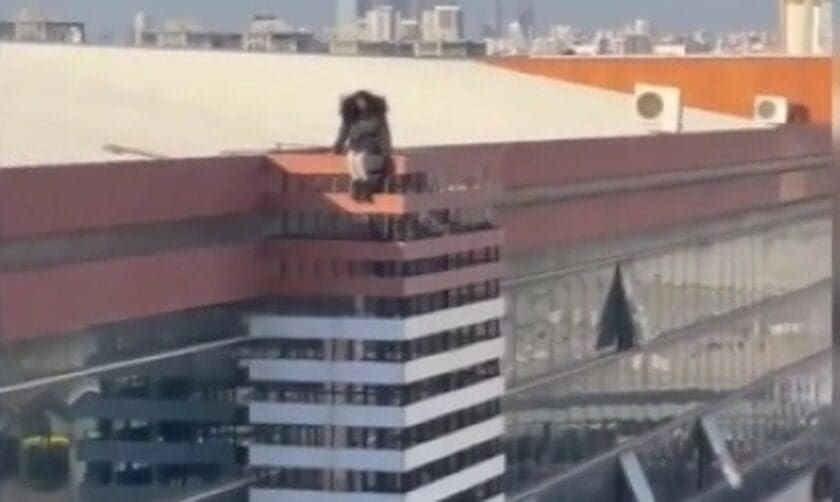 Στο σοκαριστικό βίντεο φαίνεται η στιγμή που η 54χρονη πέφτει από ταράτσα εμπορικού κέντρου και προσγειώνεται στο έδαφος.