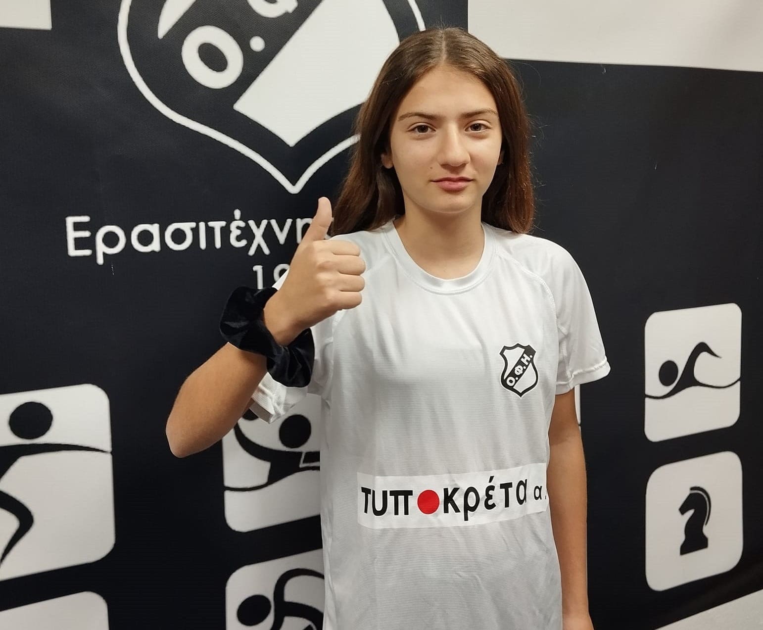 Η ταλαντούχα Ιεραπετρίτισα, θα αγωνίζεται σε πρώτη φάση με την δεύτερη ομάδα του ΟΦΗ. Η ίδια συνοδευόμενη απο την οικογένεια της, βρέθηκε στα γραφεία του Ερασιτέχνη ΟΦΗ, για τις υπογραφές με τον ΟΦΗ.