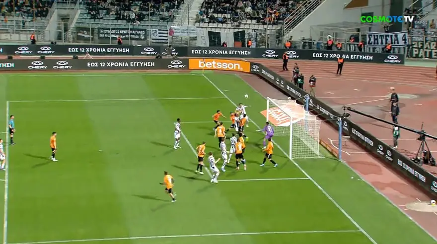 Μετά από φάση διαρκείας η ομάδα του Άγγελου Διγκόζη άνοιξε το σκορ με τον Πατρίκ Βουό, να βρίσκει δίχτυα με κεφαλιά για το 1-0 στο 14′.