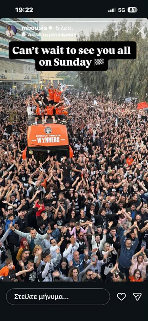 Mάλιστα μέσα από ενα ποστ που δείχνει τον κόσμο να πανηγυρίζει στην Πλατεία Ελευθερίας στη φιέστα που έγινε την Δευτέρα σε κεντρικούς δρόμους της πόλης του Ηρακλείου ο ισχυρός άνδρας του ΟΦΗ έκανε κάλεσμα στον κόσμο του ΟΦΗ να γεμίσει το Παγκρήτιο Στάδιο στο ματς με τον Άρη.