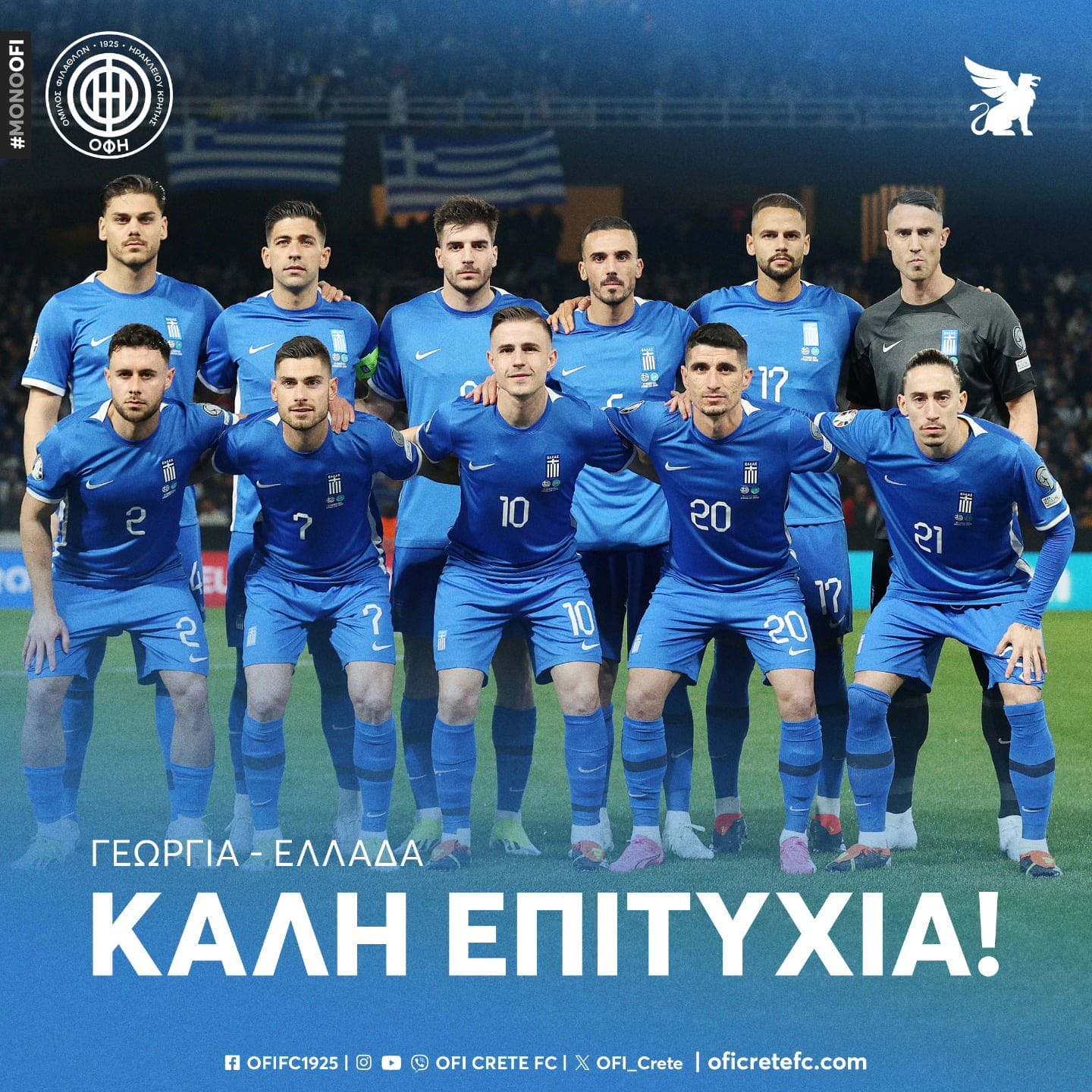 Το δικό της μήνυμα για τον τελικό της Εθνικής Ελλάδας με την Γεωργία έστειλε την Τρίτη το πρωί η ΠΑΕ ΟΦΗ με ανάρτηση της στα Social Media της ομάδας.