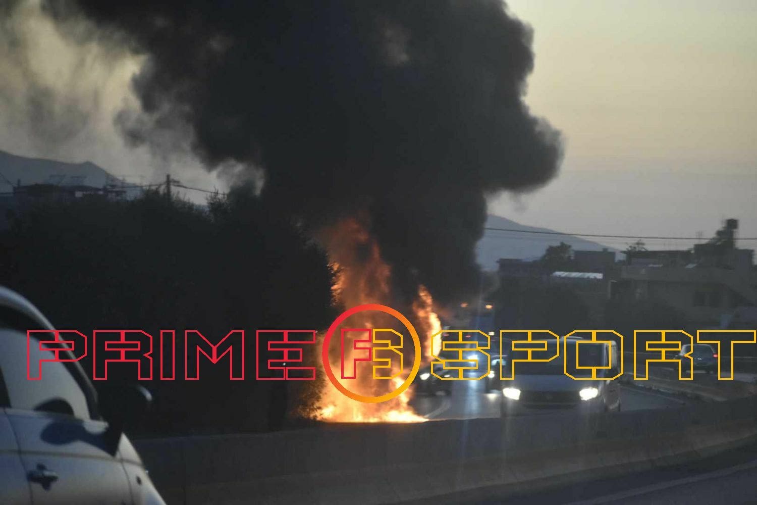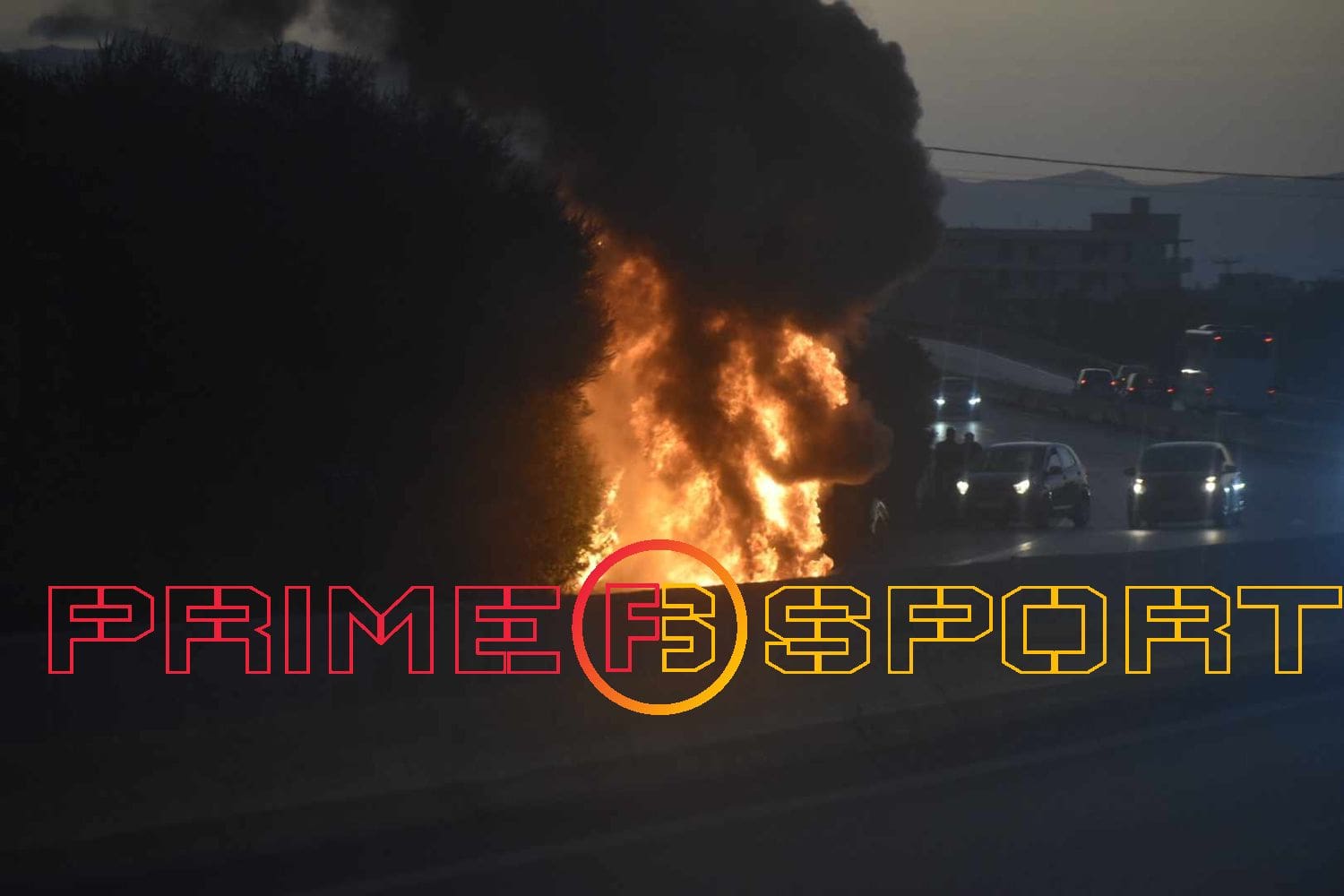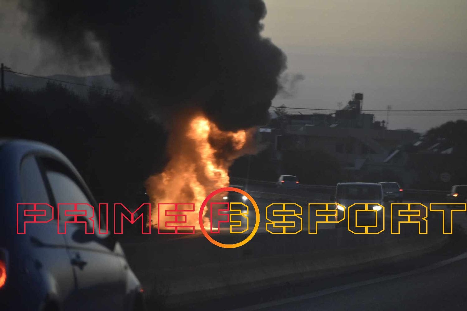 Στις φλόγες τυλίχτηκε όχημα πάνω στην Εθνική Οδό (Photos)!