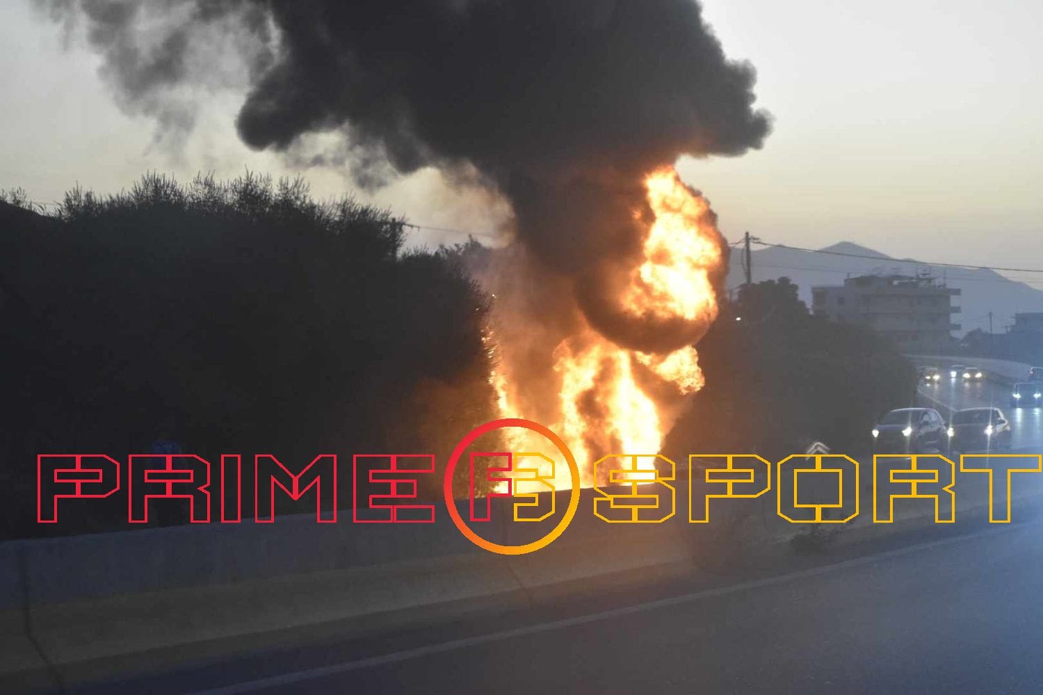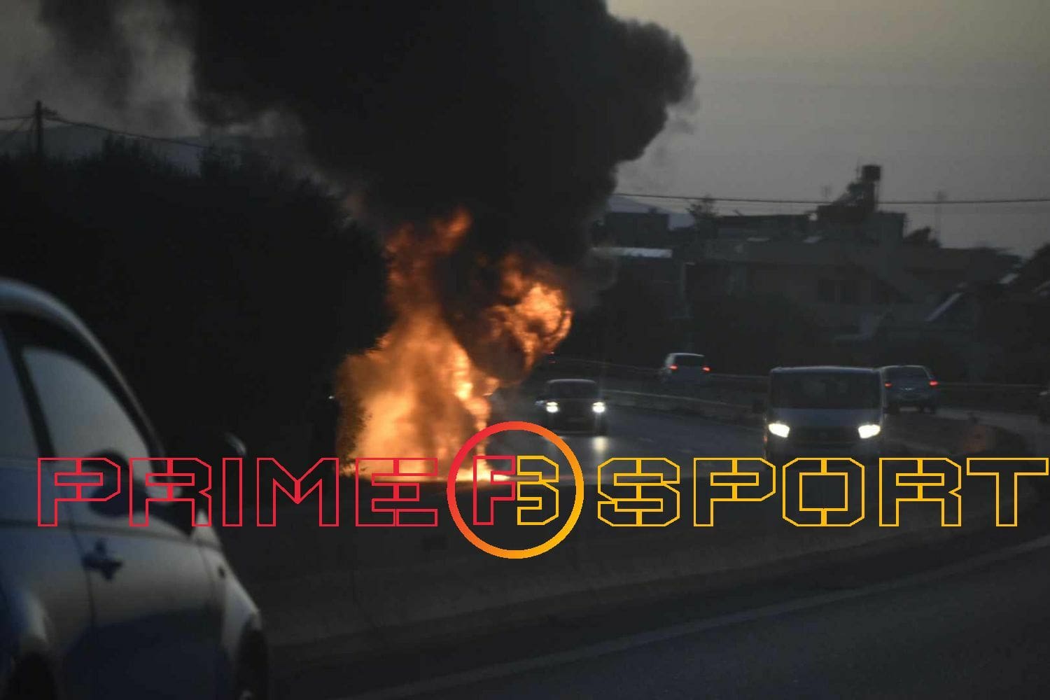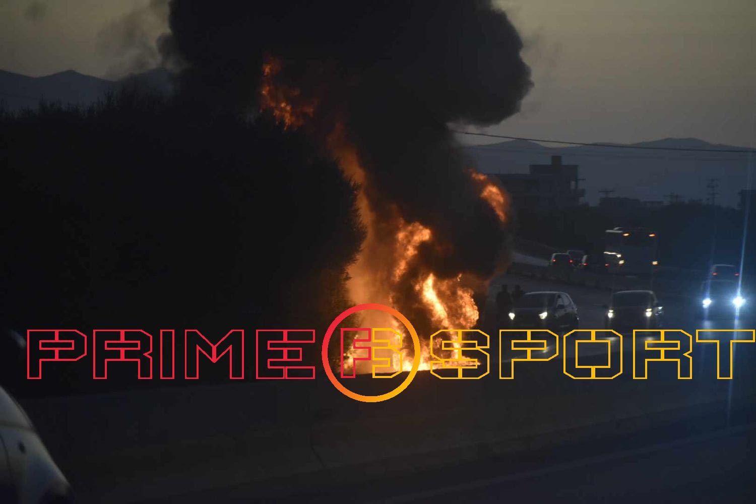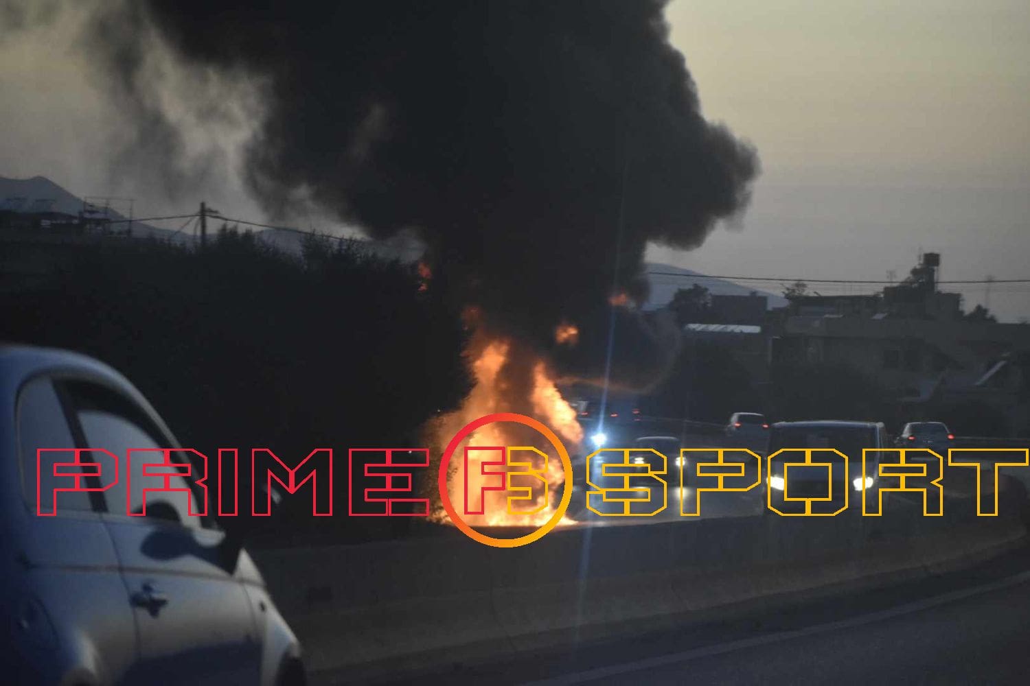 Στις φλόγες τυλίχτηκε όχημα πάνω στην Εθνική Οδό (Photos)!