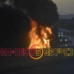 Το… θέαμα ήταν σοκαριστικό, αφού οι φλόγες ήταν μεγάλες και στο σημείο έσπευσε η Πυροσβεστική για να ελέγξει την κατάσταση με τρία οχήματα και έξι άνδρες.