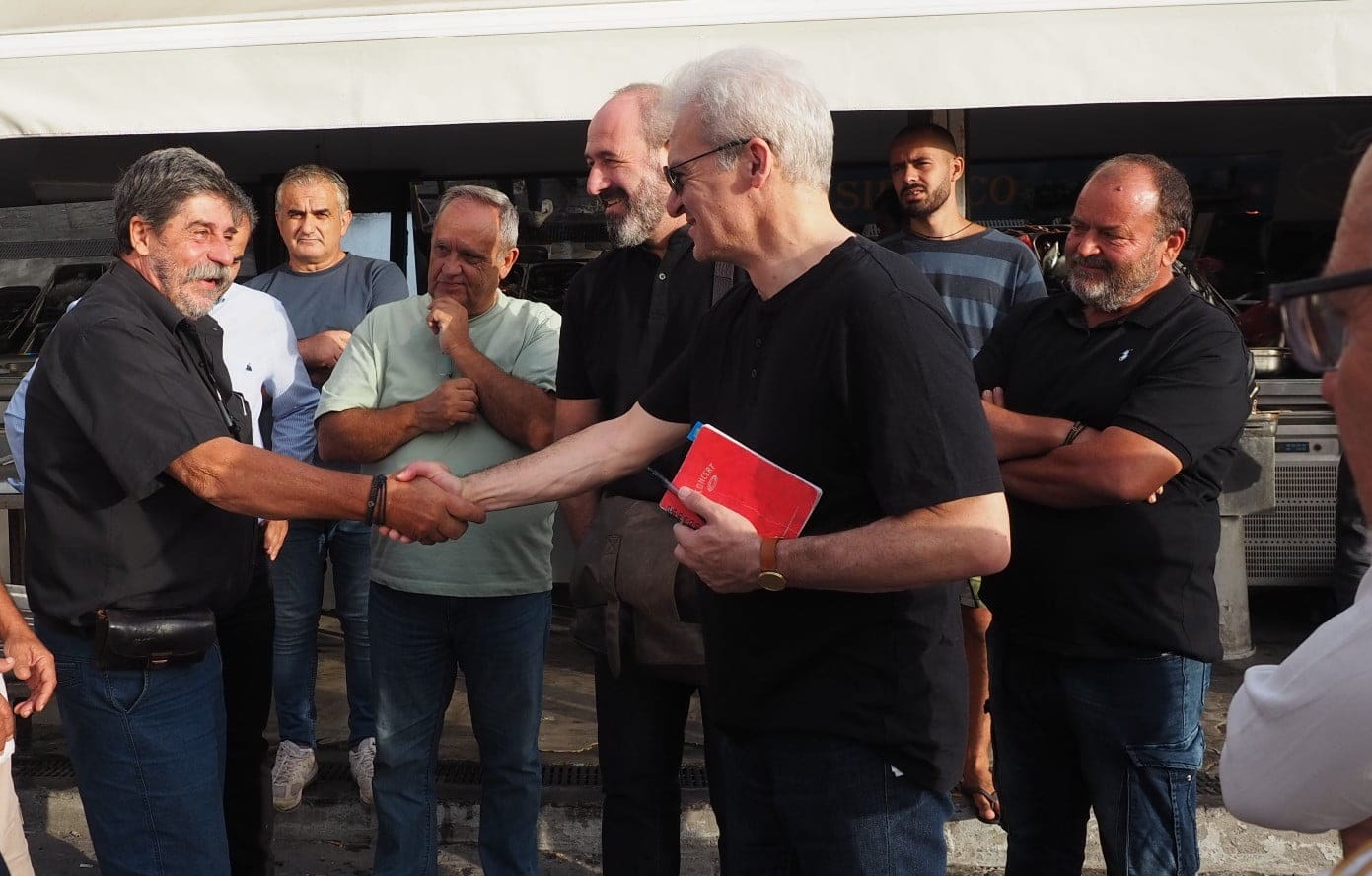 Από την πλευρά του ο Αλέξης Καλοκαιρινός, μαζί με τους υποψήφιους δημοτικούς συμβούλους που τον συνόδευαν, ανέπτυξαν τις θέσεις της παράταξης «Δικαίωμα στην Πόλη» για τη συνολική ανάπλαση του παραλιακού μετώπου και δεσμεύτηκε για τη στήριξη του κλάδου σε θέματα που αφορούν τον Δήμο αλλά και να παρέμβει στο Υπουργείο Αγροτικής Ανάπτυξης & Τροφίμων υπέρ των δίκαιων, όπως τόνισε, αιτημάτων τους.