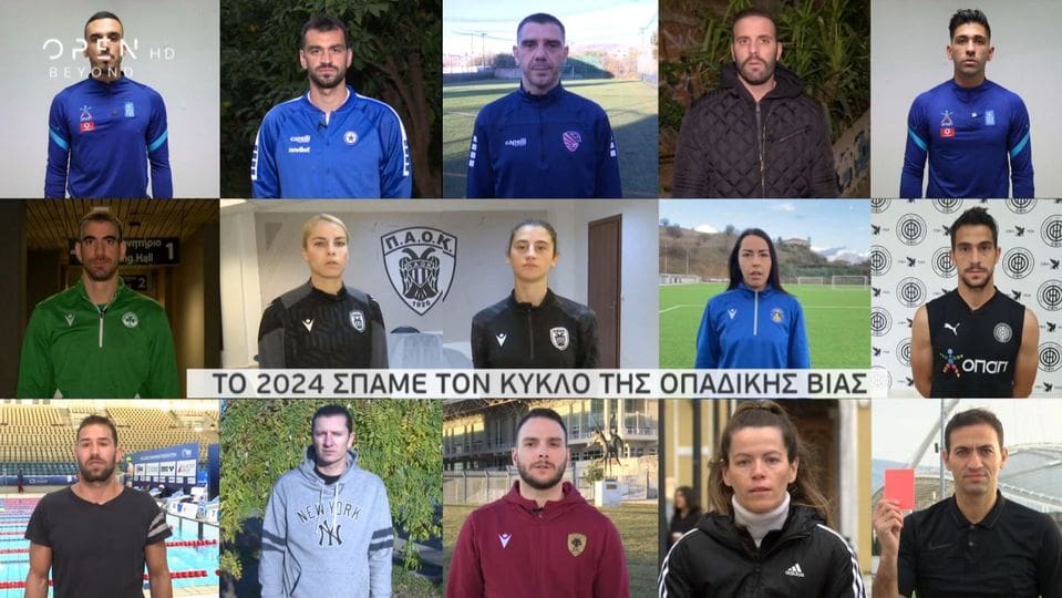 Μέσα από ένα βίντεο- γροθιά, το OPEN έδωσε βήμα σε 14 κορυφαίους Έλληνες αθλητές- όλων των σπορ και όλων των ομάδων- για να μιλήσουν και να στείλουν το πιο ηχηρό μήνυμα κατά της βίας.