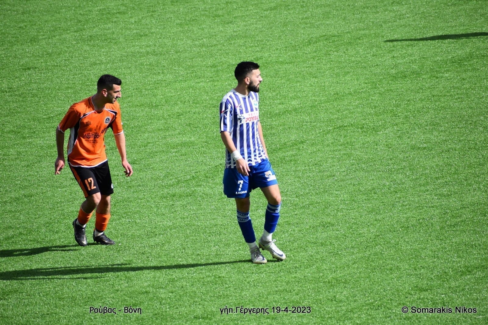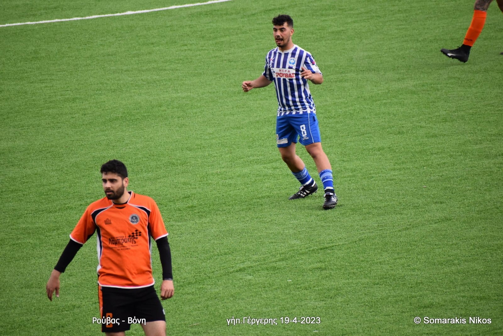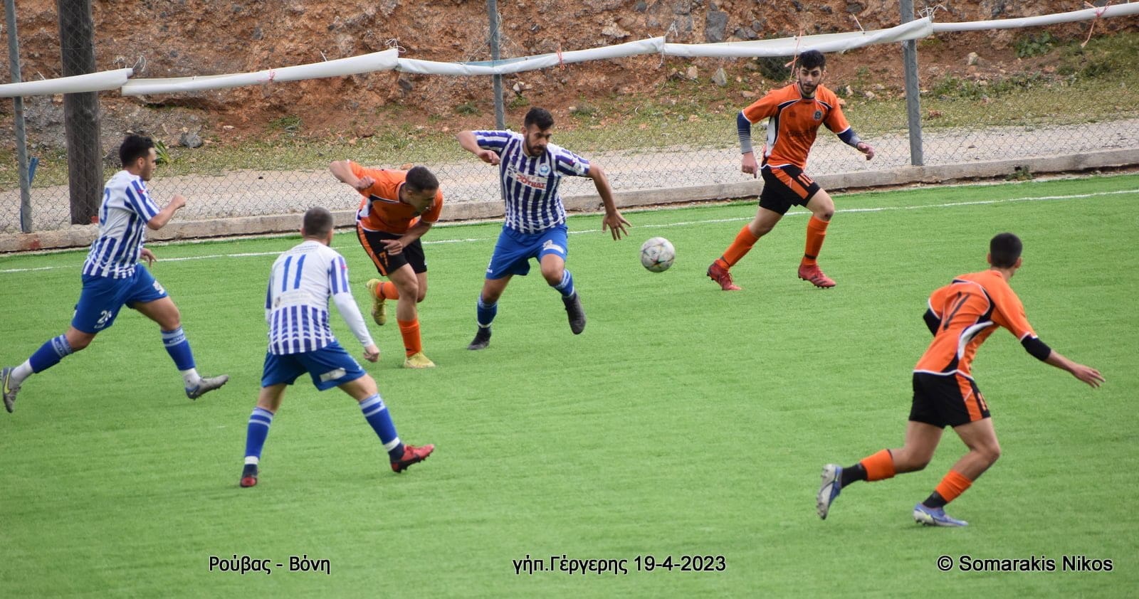 Δεύτερη σερί νίκη για τον Ρούβα, ο οποίος επικράτησε την Τετάρτη του Πάσχα (19/4) με σκορ 3-0 της Βόνης στην Γέργερη, στο πλαίσιο της 24ης (εξ’ αναβολής) αγωνιστικής της Α1 ΕΠΣΗ.