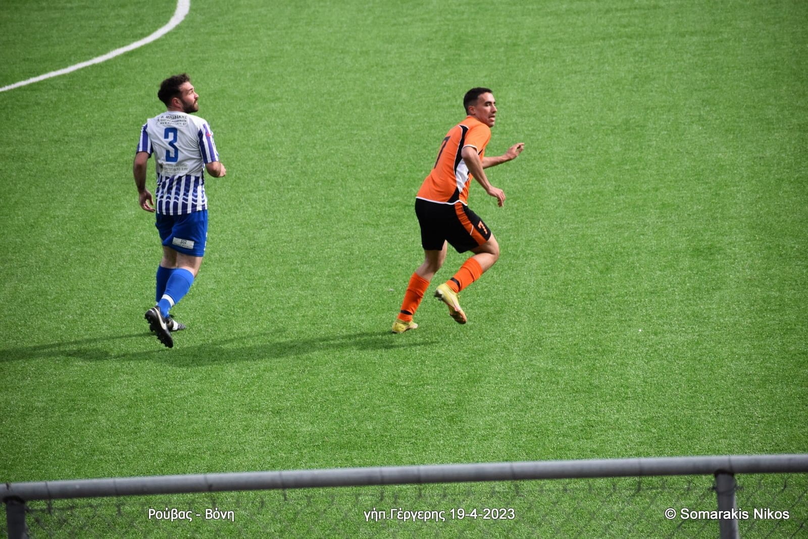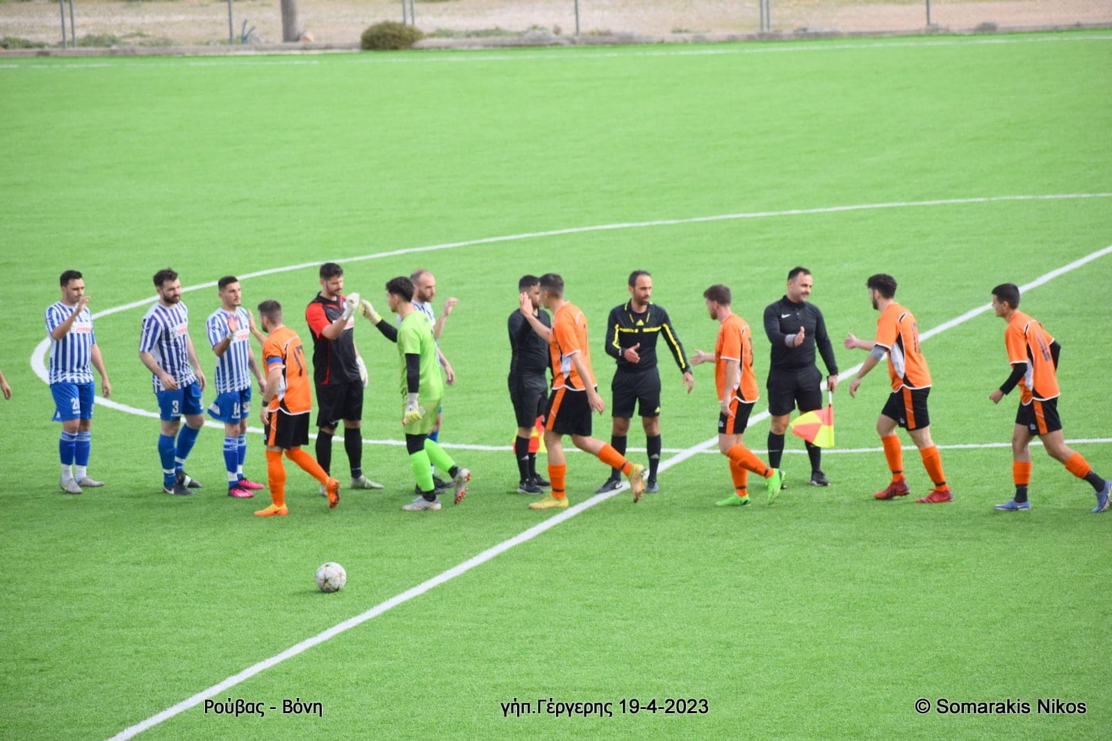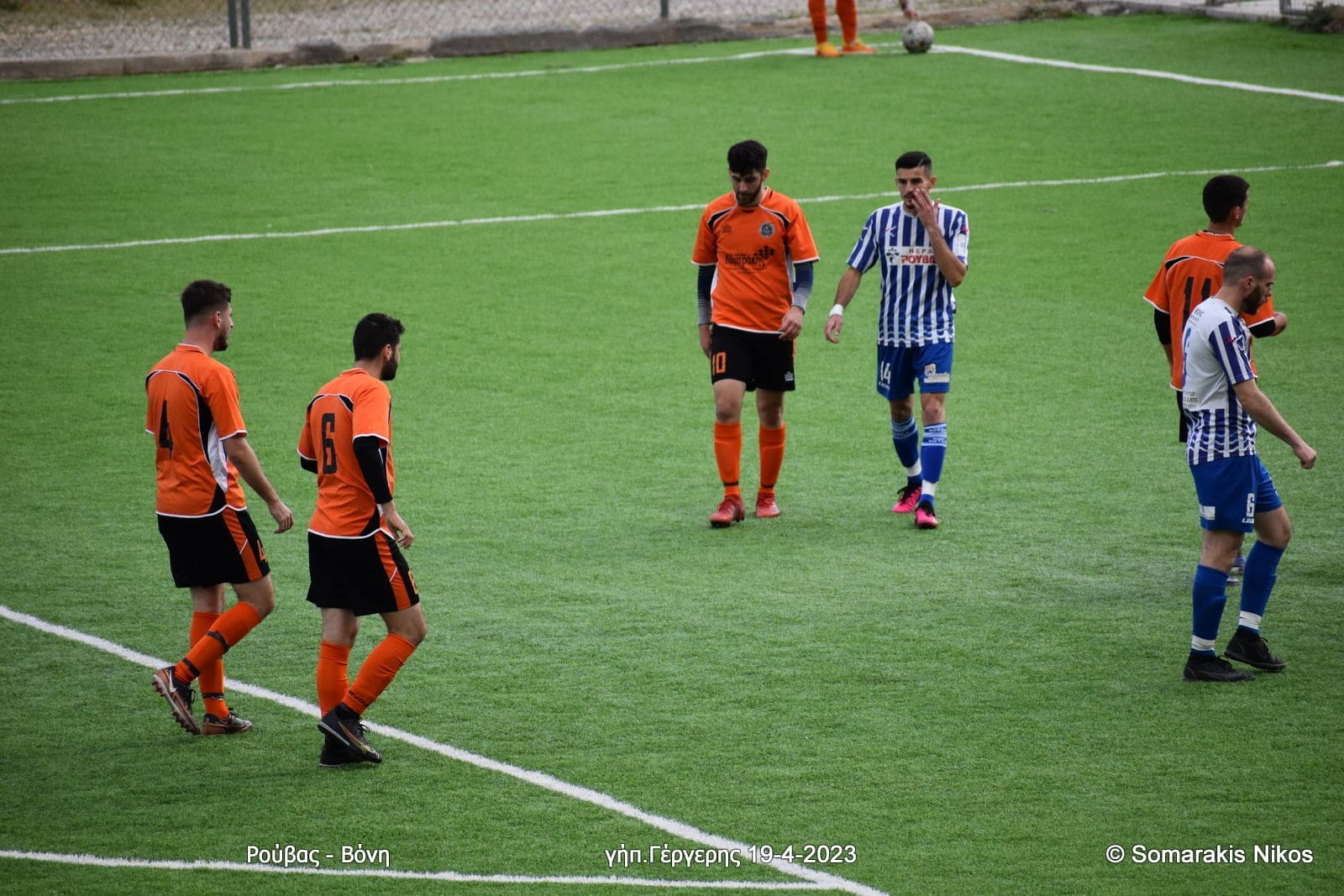 Δεύτερη σερί νίκη για τον Ρούβα, ο οποίος επικράτησε την Τετάρτη του Πάσχα (19/4) με σκορ 3-0 της Βόνης στην Γέργερη, στο πλαίσιο της 24ης (εξ’ αναβολής) αγωνιστικής της Α1 ΕΠΣΗ.