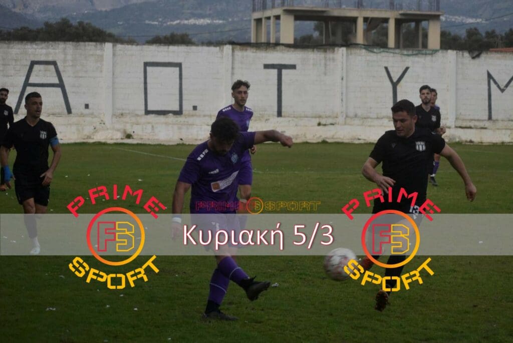 Παρακολουθήστε μέσα από το Primesport.gr τα αποτελέσματα των αναμετρήσεων της Κυριακής (5/3) από τα γήπεδα του τοπικού και της Γ’ Εθνικής. ΤΑ ΠΑΙΧΝΙΔΙΑ
