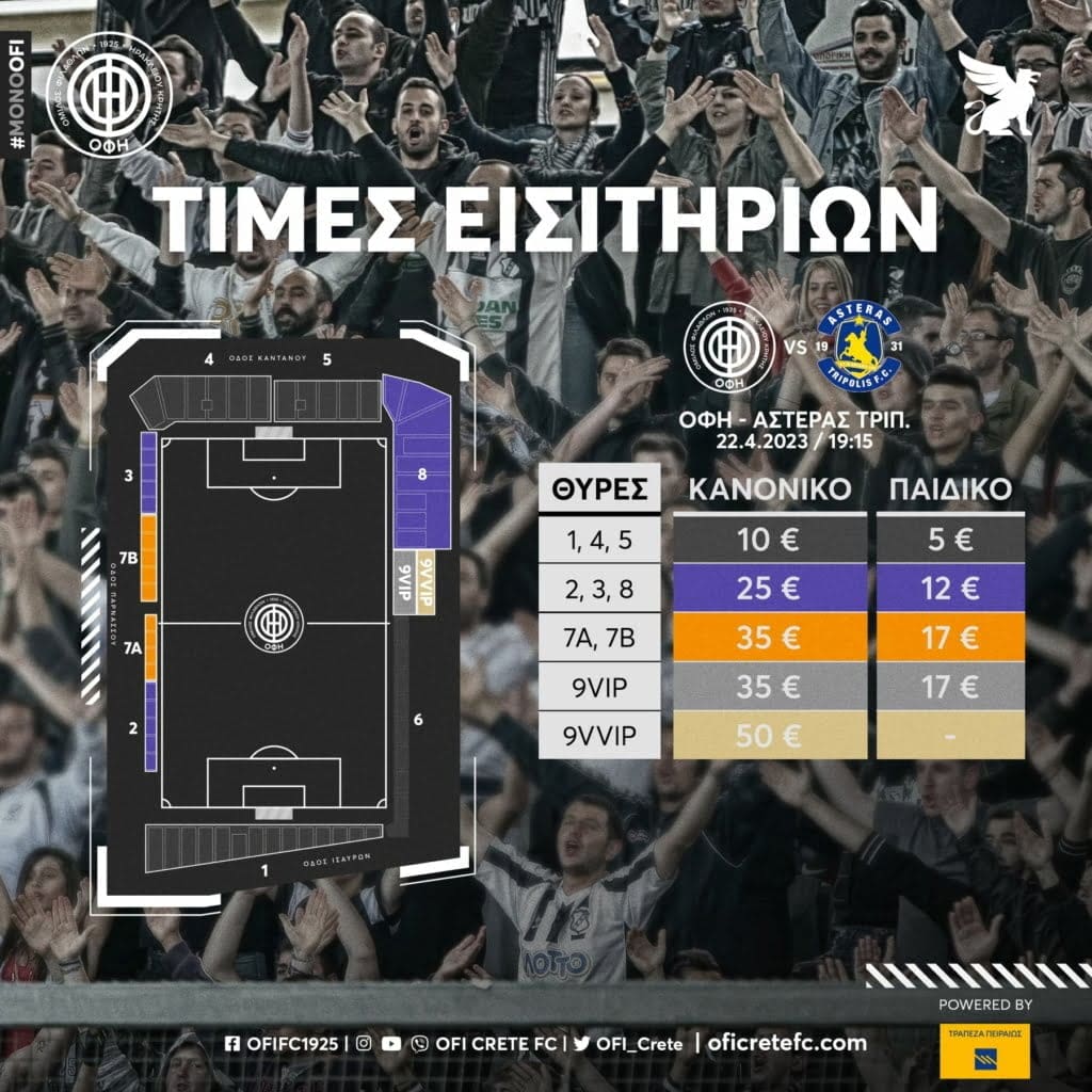 OΦΗ: Σε κυκλοφορία τα εισιτήρια της αναμέτρησης με τον Αστέρα Τρίπολης