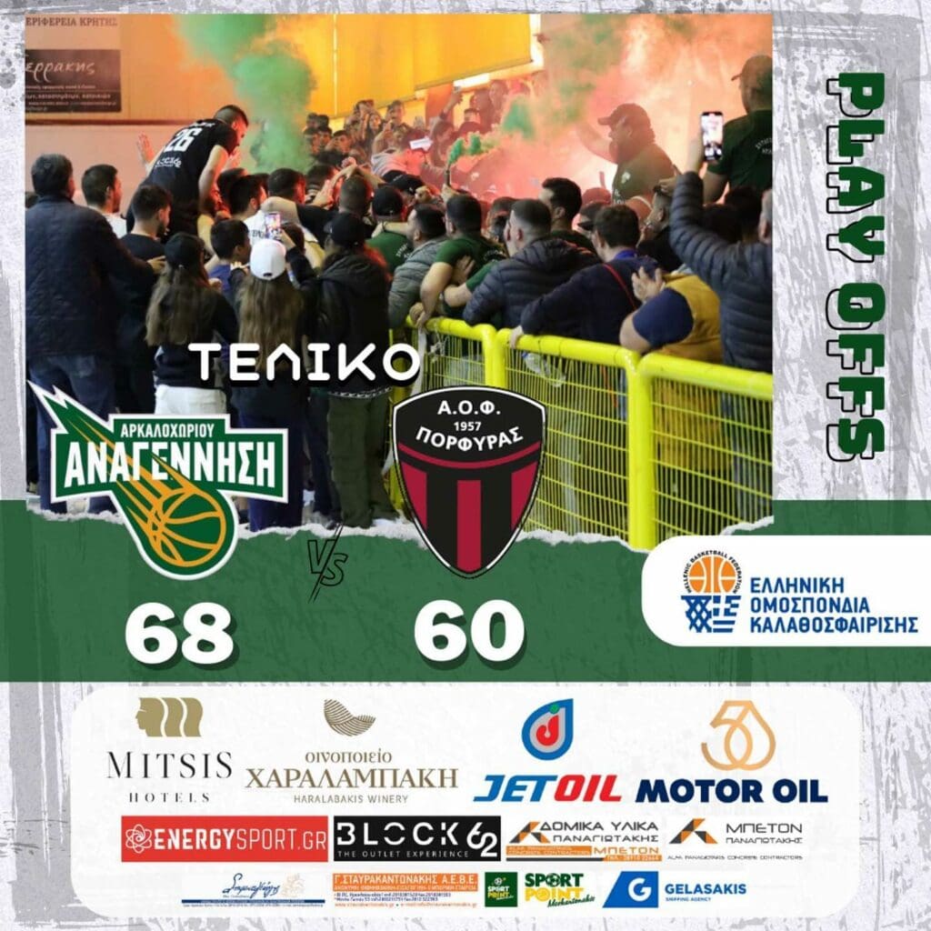 Η ιστορία γράφεται με χρυσά γράμματα στο Αρκαλοχώρι Μια Αναγέννηση πιο παθιασμένη από τότε «έπνιξε» τον Πορφύρα στο κλειστό μας, έπαιξε εκπληκτικό μπάσκετ και έκανε το 3-2 στην σειρά απέναντι στην Πειραιώτικη ομάδα. Έτσι βρίσκεται μια νίκη μακριά από την άνοδο της στη Β’ Εθνική καθώς θα αντιμετωπίσει την Ηλιούπολη στα τελικά του 2ου ομίλου […]