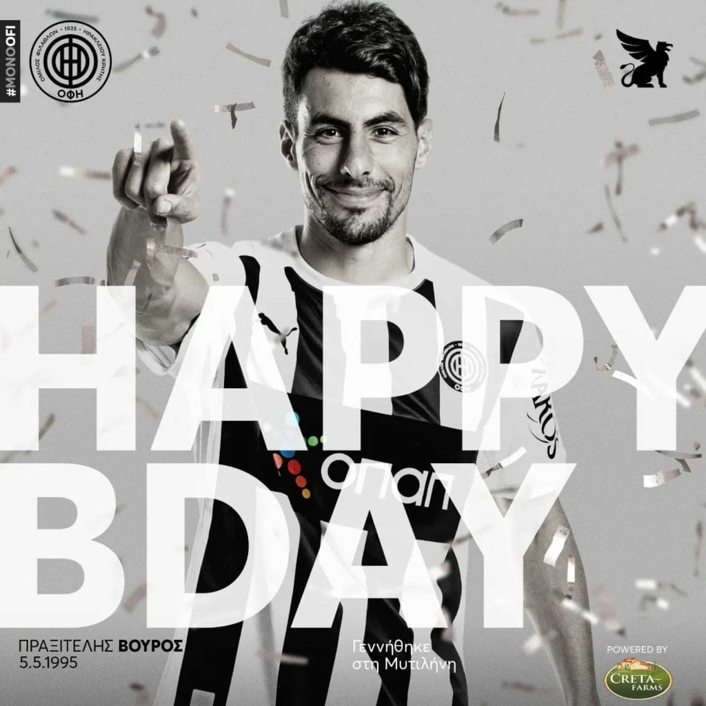 Γενέθλια έχει σήμερα ο αρχηγός του ΟΦΗ Πραξιτέλης Βούρος ο οποίος κλείνει τα 27 και μπαίνει στα 28 συμπληρώνοντας τον τρίτο χρόνο παρουσίας του στην κρητική ομάδα η οποία έσπευσε να του στείλει τις ευχές του. Kαι την φετινή σεζόν ο Μυτιληνιός επιθετικός είναι από τα βασικά στελέχη της ομάδας μετρώντας 28 συνολικά συμμετοχές με […]