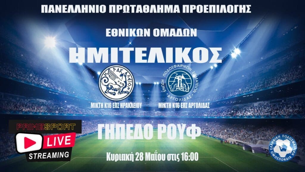 Σε ζωντανή μετάδοση από το Primesport.gr ο ημιτελικός της Μικτής Κ16 ΕΠΣΗ κόντρα στην ΕΠΣ Αργολίδας