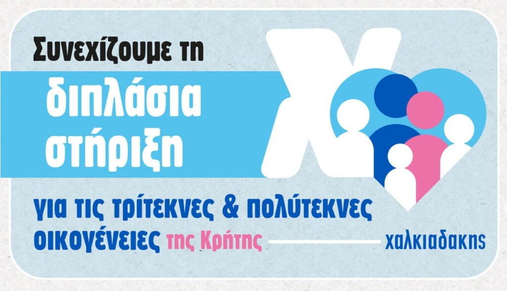 Συνεχίζεται η διπλάσια στήριξη για τρίτεκνες και πολύτεκνες οικογένειες στα σούπερ μάρκετ Χαλιαδάκης