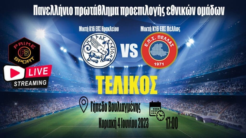 Σε ζωντανή μετάδοση από το Primesport ο τελικός Μικτή Κ16 ΕΠΣ Ηρακλείου – Μικτή Κ16 ΕΠΣ Πέλλας
