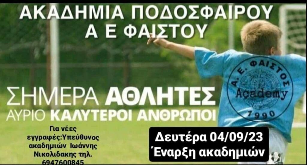 «Σήμερα αθλητές, αύριο καλύτεροι άνθρωποι»: Ξεκινάει στις 4/9 η νέα σεζόν στην Ακαδημία της Φαιστού
