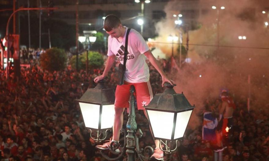 Τέσσερις φίλαθλοι του Ολυμπιακού έπεσαν από στύλους στους πανηγυρισμούς