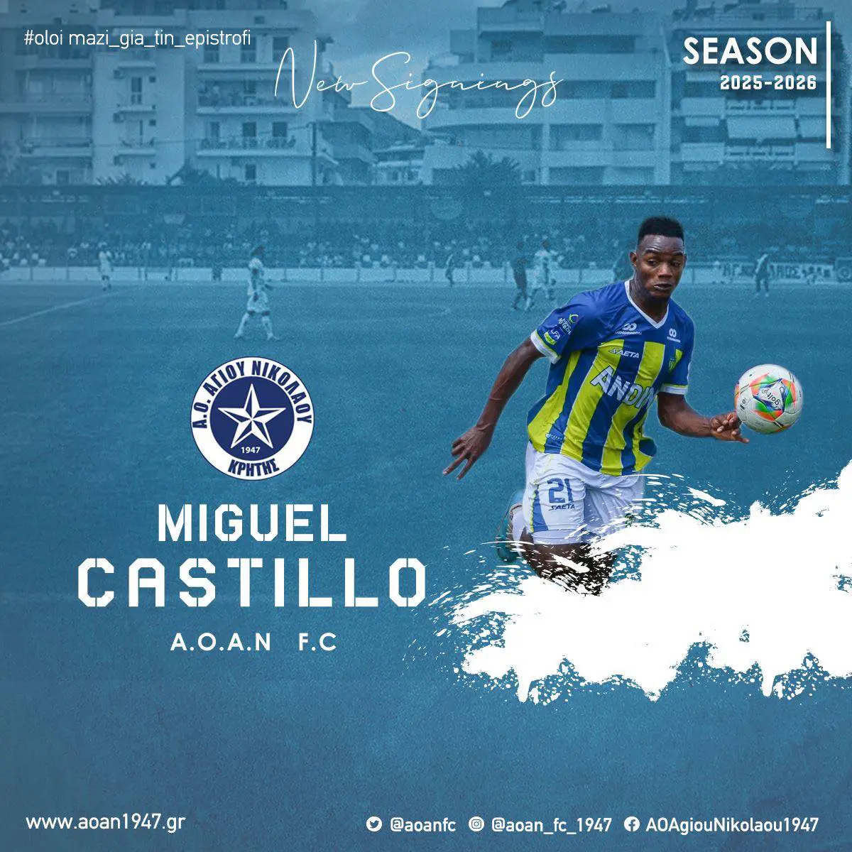 “Το Διοικητικό Συμβούλιο του ΑΟΑΝ, κάνει γνωστή την προσθήκη του Μιγκέλ Άνχελ Καστίγιο, στο δυναμικό της ομάδας.