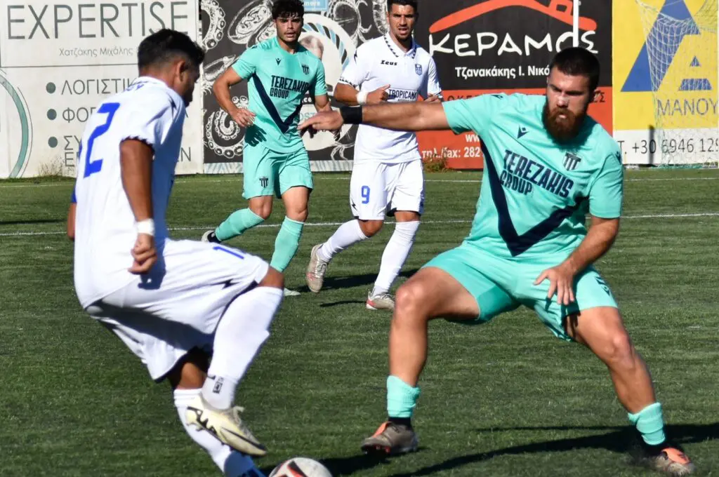 Το πρώτο ημίχρονο ήταν ένας επιθετικός μονόλογος για την φιλοξενούμενη ομάδα που απείλησε ουκ ολίγες φορές την εστία του Ιατράκη καταφέρνοντας να την παραβιάσει στο 37΄όταν μετά από σέντρα του Κορώνη ο Κολλάς με κεφαλιά έστειλε τη μπάλα στα δίχτυα κάνοντας το 0-1 που ήταν και το σκορ του ημιχρόνου.