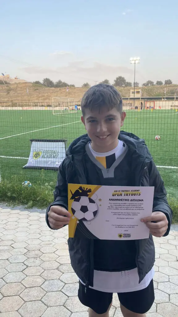 Ο νεαρός ποδοσφαιριστής συμμετείχε χθες σε δοκιμαστικά της ΑΕΚ που πραγματοποιούνται στην Κρήτη, με τον πατέρα του να παρακολουθεί συγκινημένος την προσπάθειά του.
