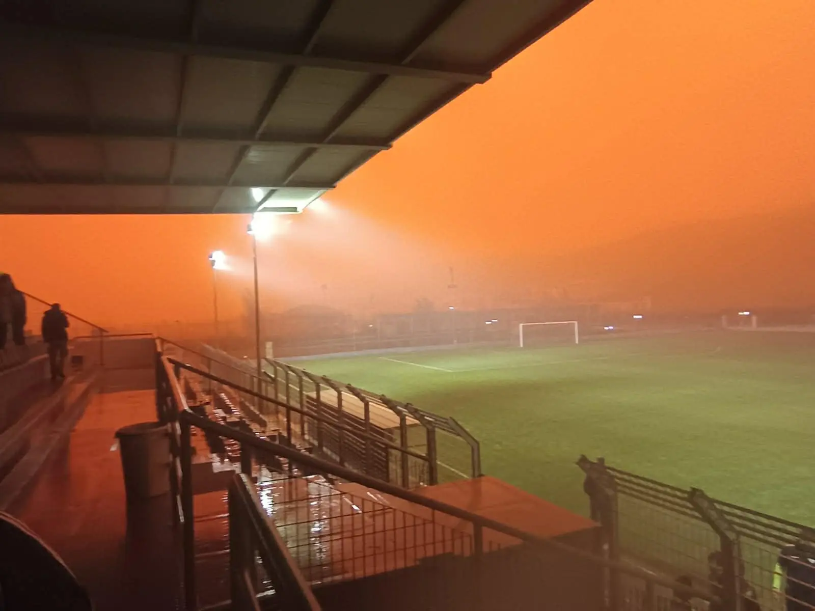 Ο ρέφερι αποφάσισε τη διακοπή του αγώνα στο ημίχρονο, εξαιτίας της αποπνικτικής ατμόσφαιρας που προκάλεσε η σαχαριανή σκόνη, σε συνδυασμό με τις έντονες βροχοπτώσεις που έπληξαν την περιοχή. Η αρχική απόφαση ήταν το παιχνίδι να συνεχιστεί αύριο στις 16:00.