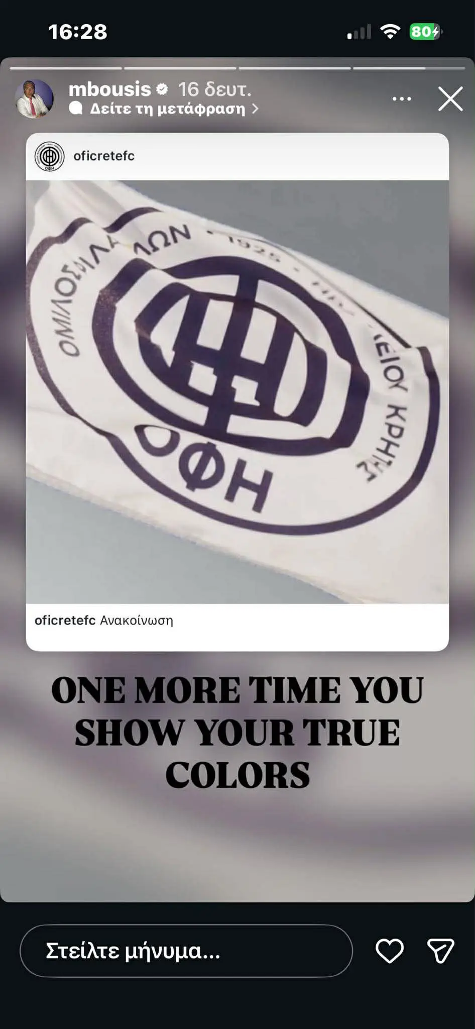 Ο Μιχάλης Μπούσης, με απανωτά… χτυπήματά του, με stories στο Instagram, θέλησε να εκφράσει τη δυσαρέσκεια του για τα όσα γίνονται εις βάρος του ΟΦΗ με τους ορισμούς Ελλήνων διαιτητών στο VAR στον τελικό του Κυπέλλου Ελλάδας με τον ΠΑΟΚ.