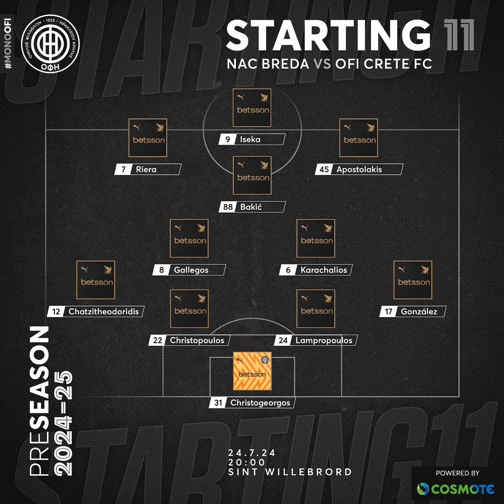 Το τελευταίο φιλικό προετοιμασίας επί Ολλανδικού εδάφους δίνει σήμερα ο ΟΦΗ ο οποίος αντιμετωπίζει στις 8μ.μ (Cosmote Sport 2) την Μπρέντα.