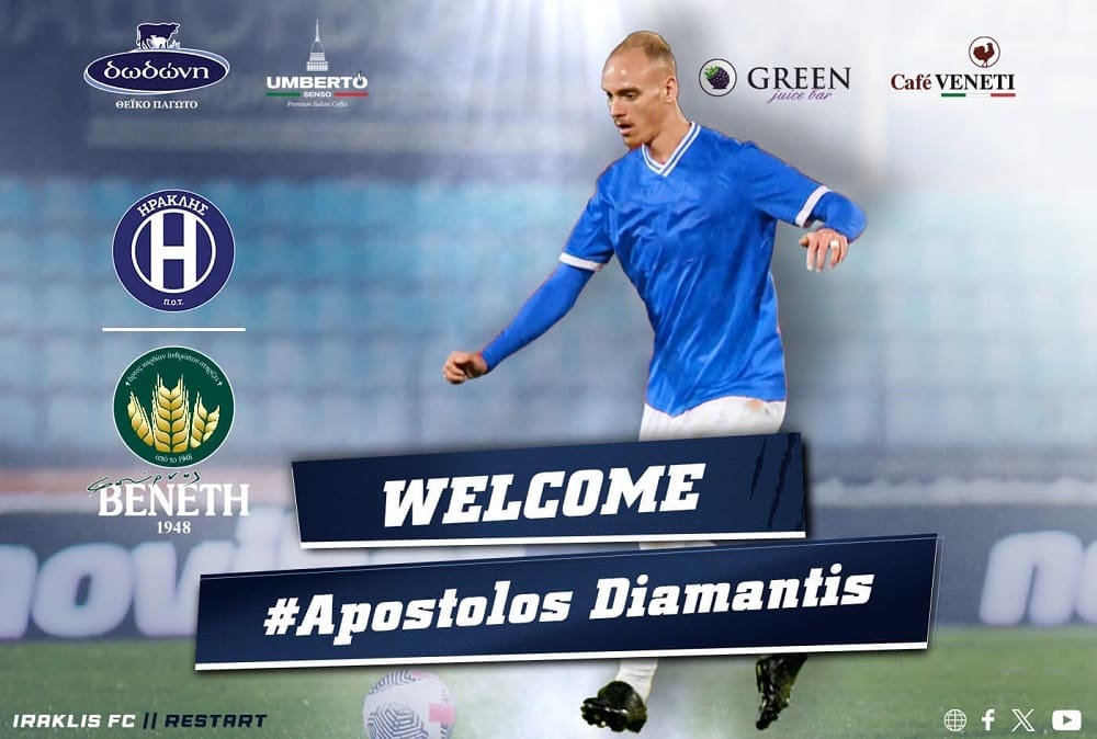 Παίκτης του Ηρακλή με κάθε επισημότητα για τον επόμενο χρόνο με προοπτική ανανέωσης για ακόμη ένα έτος είναι ο πρώην κεντρικός αμυντικός του ΟΦΗ και του Πανσερραϊκού Απόστολος Διαμαντής.