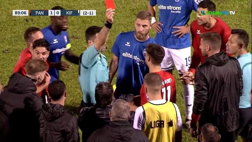 Το δικαίωμα της διεκδίκησης της πρόκρισης επί ίσοις όροις χάθηκε άλλωστε από τα τεράστια λάθη του διαιτητή του αγώνα, Σπύρου Ζαμπαλά, με αποκορύφωμα το γεγονός πως επέτρεψε στην Παναχαϊκή να αγωνιστεί με έντεκα παίκτες αφού ο Λούκας Πολέτο δεν αποχώρησε από τον αγωνιστικό χώρο την στιγμή της αλλαγής του μετά από την αποβολή του Χάβι Κατσεγιάνο, με δεύτερη κίτρινη κάρτα.