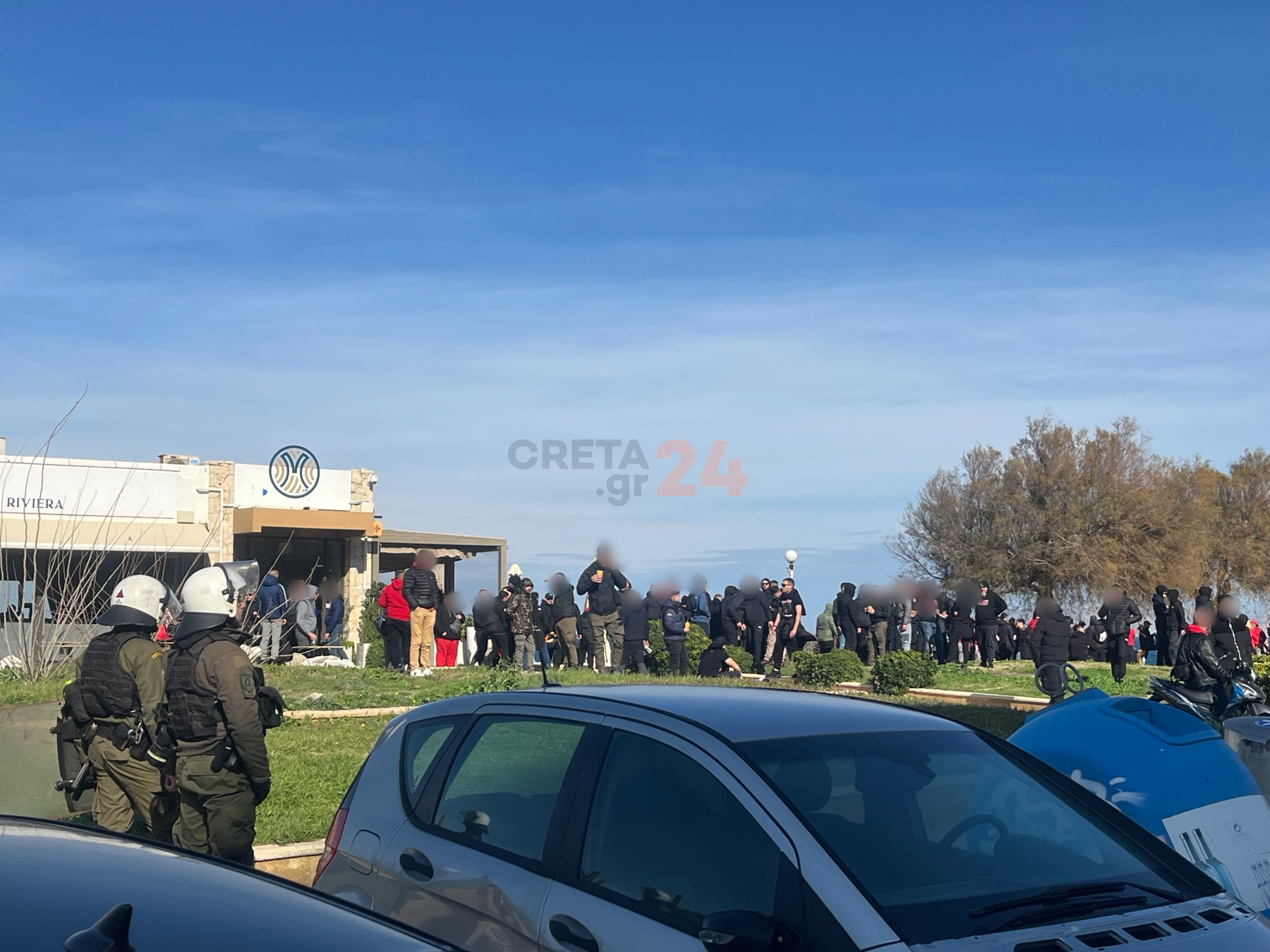 Στο σημείο βρέθηκαν ισχυρές αστυνομικές δυνάμεις από την Αθήνα και την Κρήτη για την αποτροπή επέκτασης των επεισοδίων.