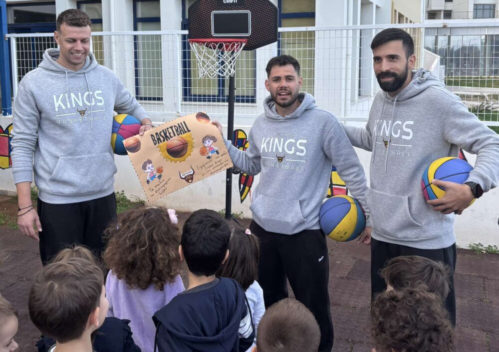Μια ξεχωριστή και χαρούμενη ημέρα έζησαν τα παιδιά του Νηπιαγωγείου Γάλλου, καθώς μετά από πρόσκληση της διευθύντριας Μπουντουροπούλου Ραλλού, οι δασκάλες του Νηπιαγωγείου Οικονομάκη Σοφία και Δουλή Εύη, υποδέχτηκαν στο σχολείο τους παίκτες της ομάδας μπάσκετ μας, Γιούσση Κυρίτση, Κυριάκος Ασουμανάκης και τον Γυμναστή του Ρέθυμνο Cretan Kings Χρήστο Μαραυγάκη, συνοδευόμενοι από τον υπεύθυνο marketing του συλλόγου Βαλάντης Χόμπη.