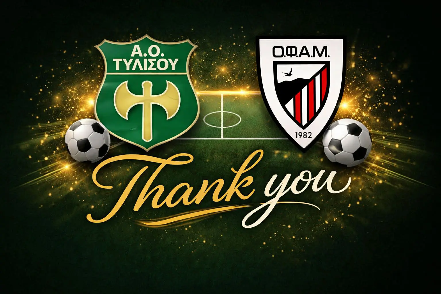 “Θα θέλαμε να εκφράσουμε τις θερμές μας ευχαριστίες προς το σωματείο Α.Ο. Τυλίσου, καθώς και προσωπικά προς τον πρόεδρο κ. Ευάγγελο Τσαγκαράκη, για την πολύτιμη στήριξη και συνεργασία τους κατά την αγωνιστική περίοδο που πέρασε.