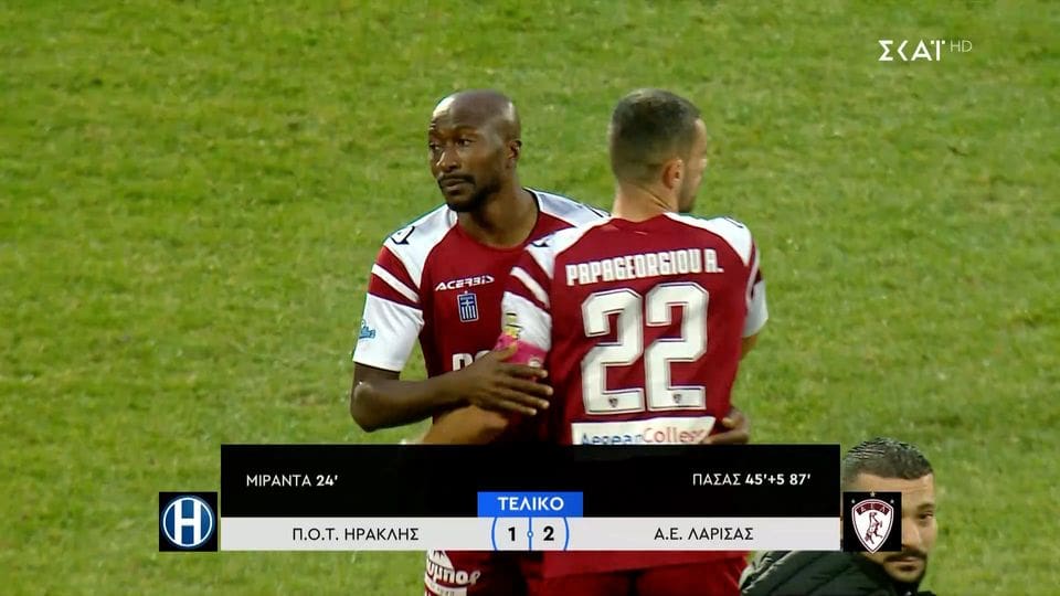 Η ΑΕΛ αν και βρέθηκε πίσω στο σκορ, εκμεταλλεύτηκε την αποβολή του Μπερτόγλιο και με δύο γκολ του Γιάννη Πασά πανηγύρισε ένα σπουδαίο διπλό (1-2) και αύξησε τη διαφορά της από τον Ηρακλή στους 14 βαθμούς.