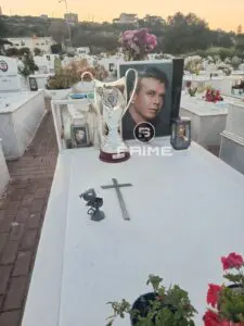 Σε ένα μνημείο. Σε έναν άνθρωπο που δεν ήταν πια εκεί — αλλά ήταν παντού. Στον φίλο του