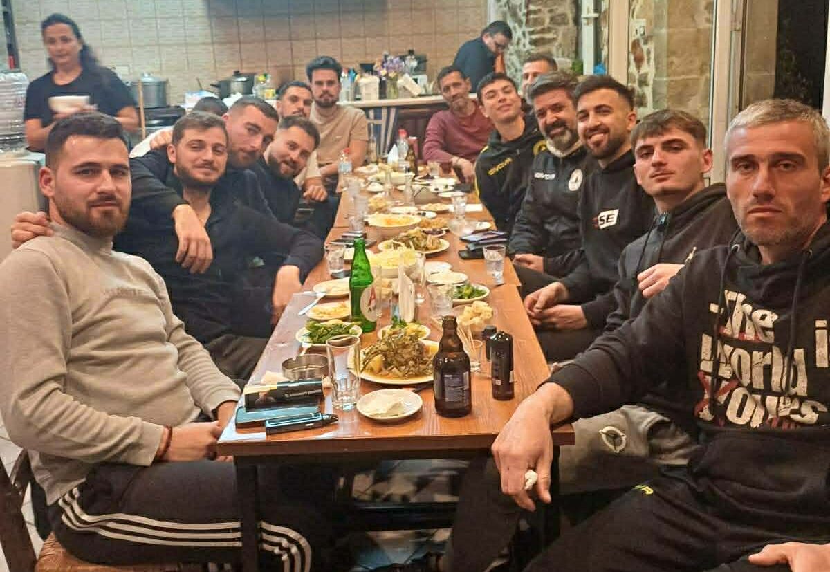 Με ρακί και καλό φαγητό ολοκλήρωσαν μια όμορφη βραδιά μετά την προπόνηση στην Πόμπια οι παίκτες του Κόρακα, με τον Στάθη Κορνάρο και την ομάδα του να περνούν ευχάριστες στιγμές πριν από το κρίσιμο παιχνίδι με τον ΠΟΗ στο γήπεδο Σκουρέλλου.
