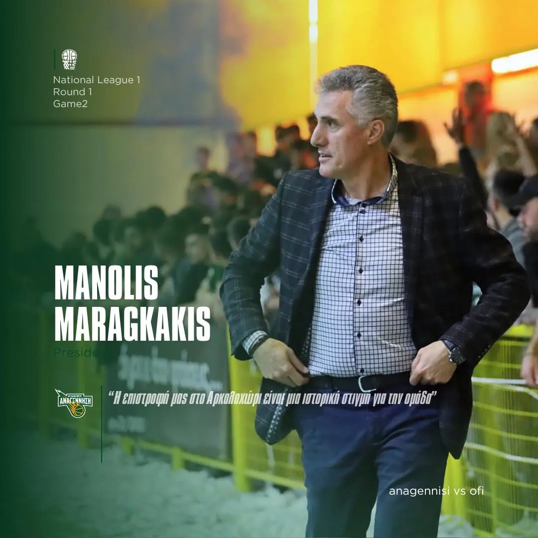 «Η επιστροφή της Αναγέννησης στο κλειστό γυμναστήριο του Αρκαλοχωρίου δεν είναι απλώς ένα αθλητικό γεγονός. Είναι μια ιστορική στιγμή, ένα βαθιά συγκινητικό ορόσημο για την ομάδα μας, για την κοινωνία του Αρκαλοχωρίου και για όλη την τοπική μπασκετική κοινότητα.