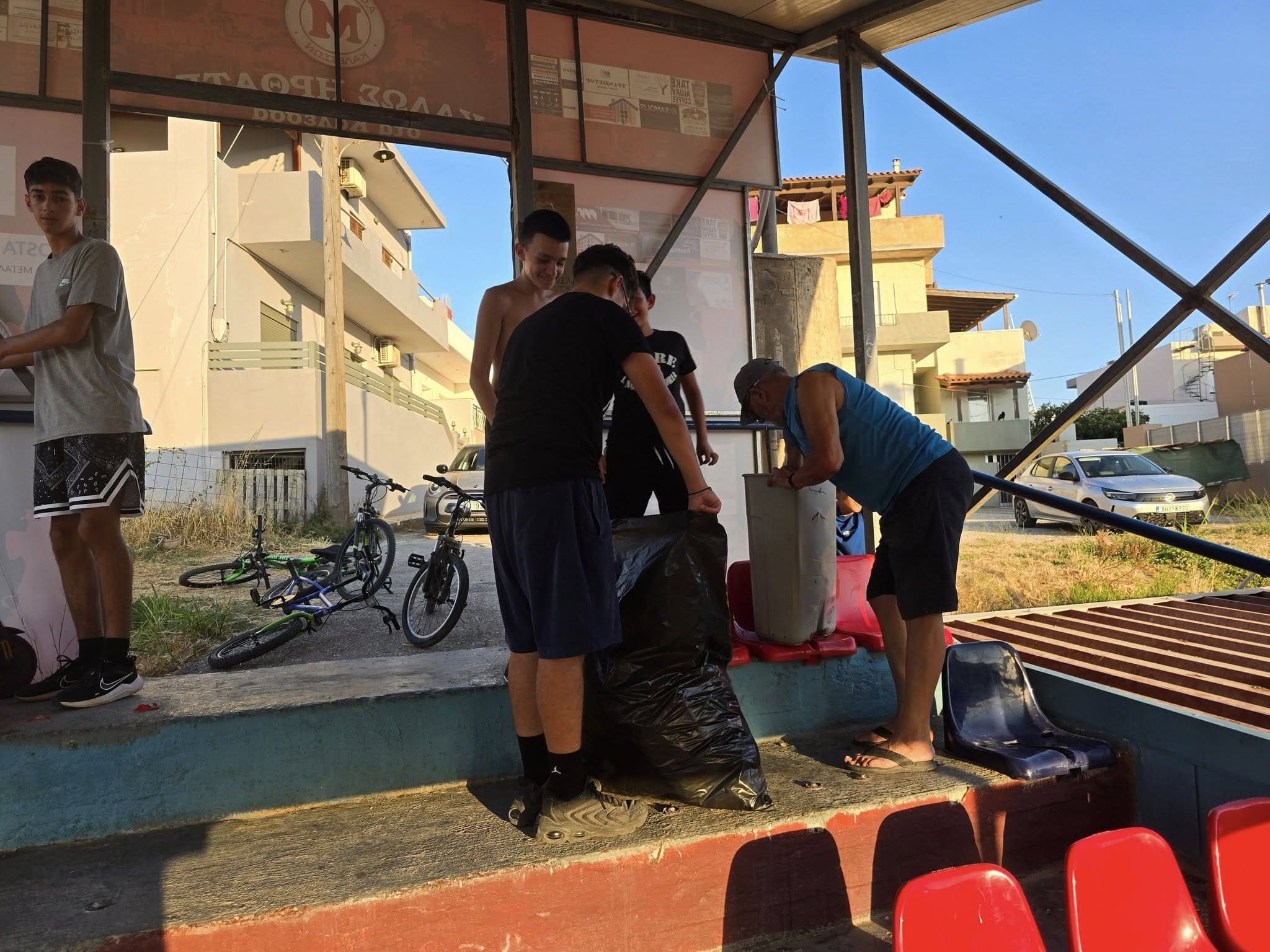 Με εθελοντική διάθεση και χαμόγελο, τα παιδιά του χωριού βοήθησαν στον καθαρισμό της κερκίδας, ενόψει της σημερινής πρώτης προπόνησης της ομάδας για την έναρξη της προετοιμασίας της σεζόν, με το σωματείο να εκφράζει το θαυμασμό και την ευγνωμοσύνη της μέσω ανακοίνωσης.