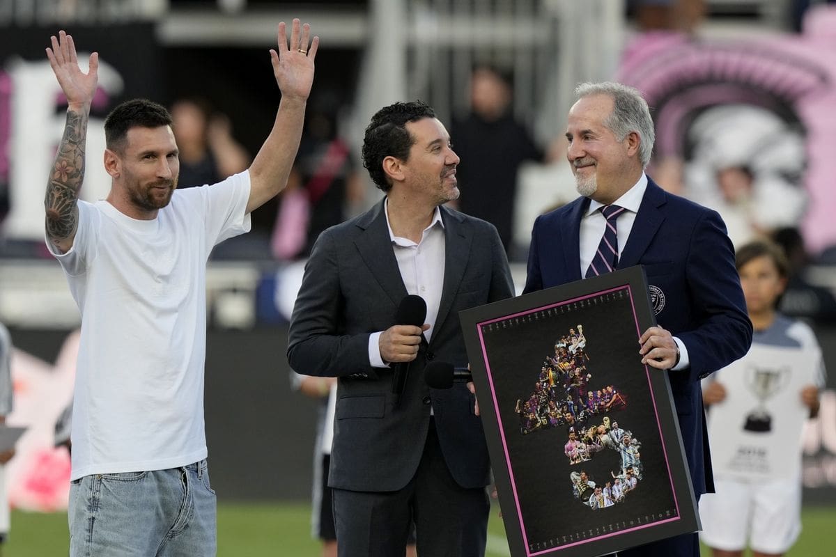 Το πανό πλαισίωναν 45 παιδιά από τις ακαδημίες της ομάδας της Φλόριντα, ενώ μέλη της διοίκησης έδωσαν στον 37χρονο σταρ ένα κάδρο, στο οποίο δέσποζαν στιγμές του Μέσι με τα τρόπαια που έχει κερδίσει με τις Μπαρτσελόνα, Παρί Σεν Ζερμέν, Μαϊάμι και Αλμπισελέστε.