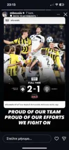 Στη συνέχεια σε επόμενο story του έγραψε: “Υπερήφανος για την ομάδα μας, υπερήφανος για τις προσπάθειές μας. Συνεχίζουμε τη μάχη”.