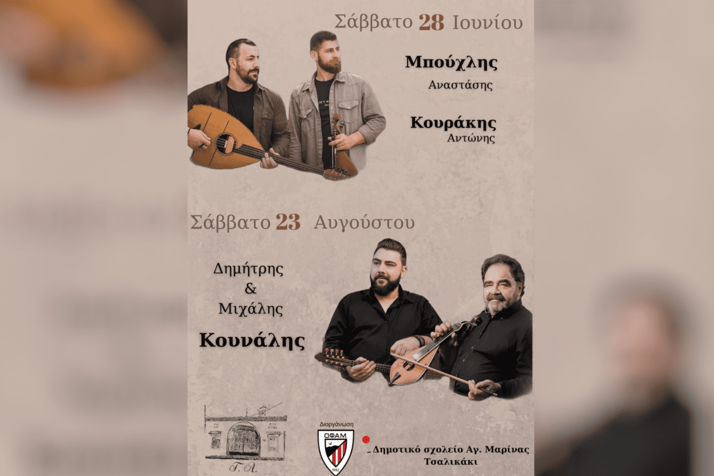 Ο ΟΦΑΜ ετοιμάζεται να προσφέρει στο κοινό δύο αξέχαστες καλοκαιρινές βραδιές γεμάτες μουσική, παράδοση και αυθεντική κρητική διασκέδαση, στον προαύλιο χώρο του Δημοτικού Σχολείου Αγίας Μαρίνας Τσαλικάκι.