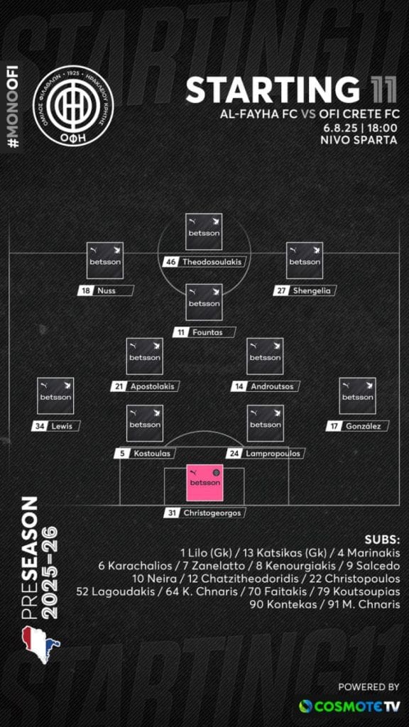 Σε περίπου μια ώρα από τώρα θα ξεκινήσει το φιλικό του ΟΦΗ με αντίπαλο την Al Fayha.
