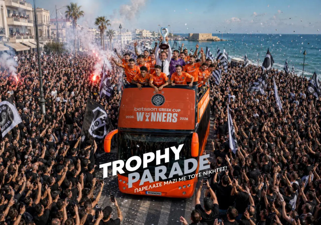 Οι Κυπελλούχοι Ελλάδας 2026 επιστρέφουν σπίτι τους και η πόλη «ντύνεται» στα ασπρόμαυρα για μια ανεπανάληπτη γιορτή, με τον κόσμο να γίνεται ένα με την ομάδα.