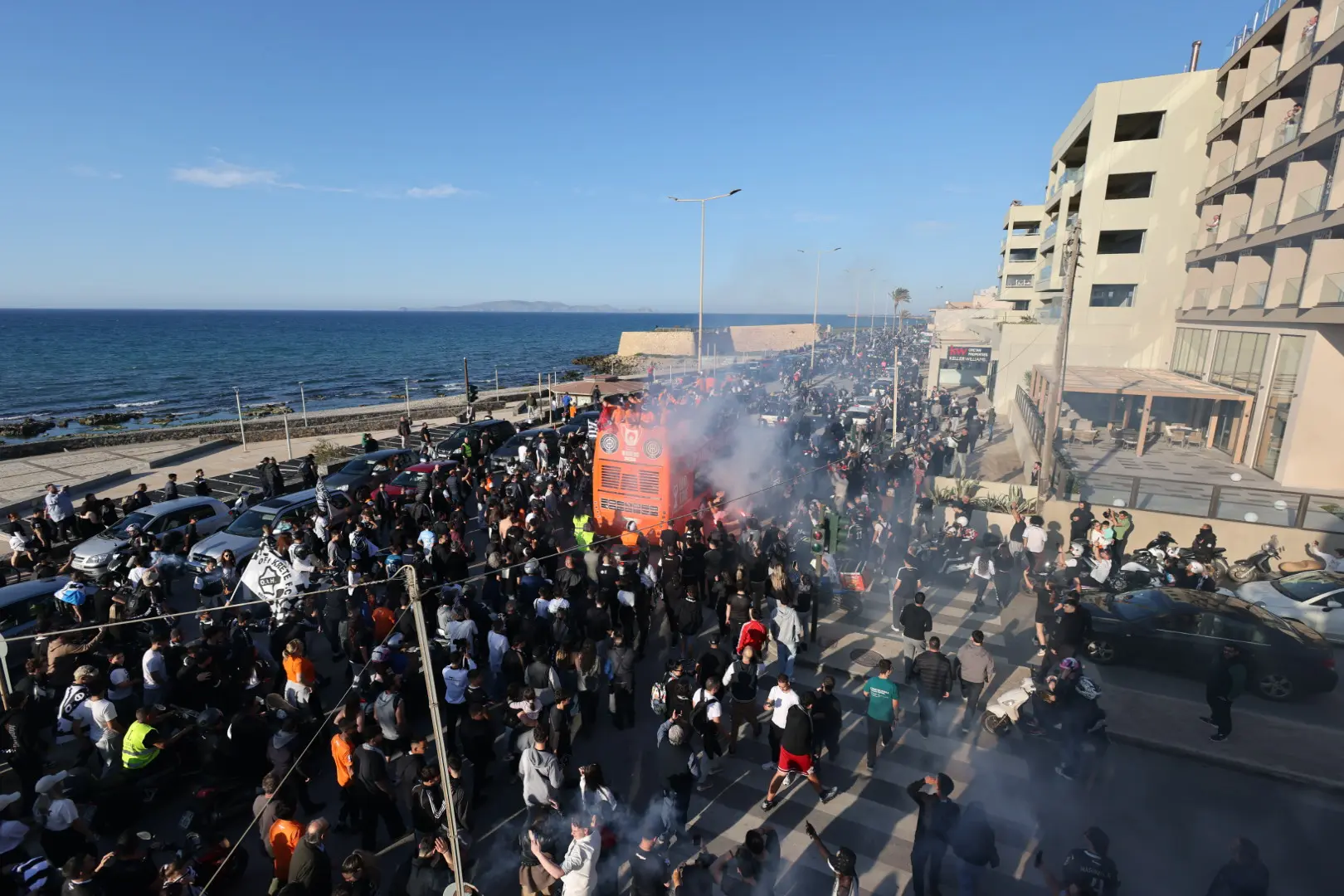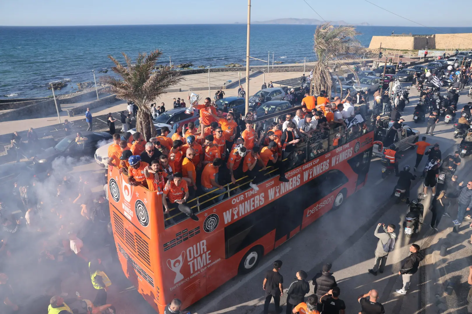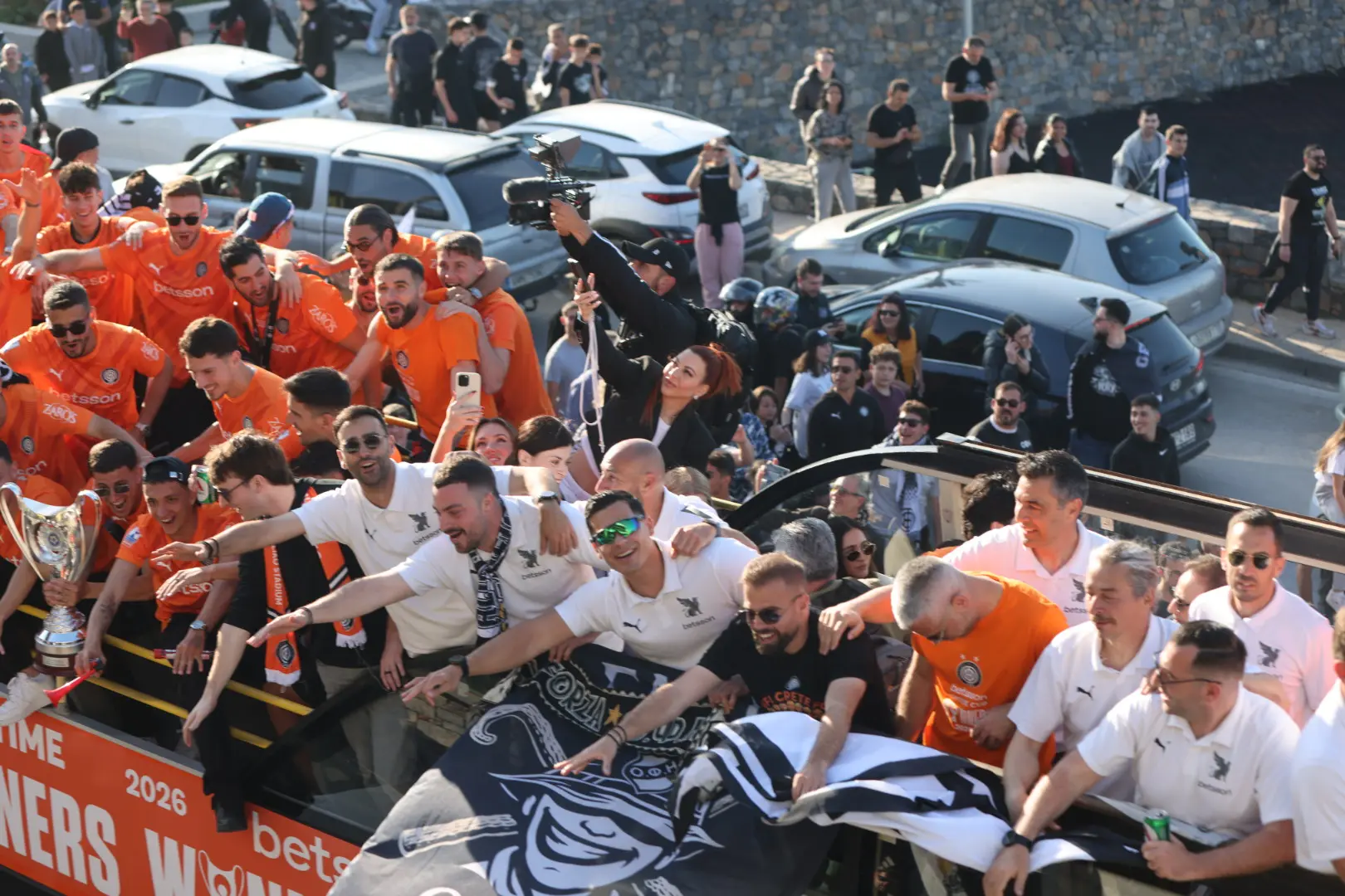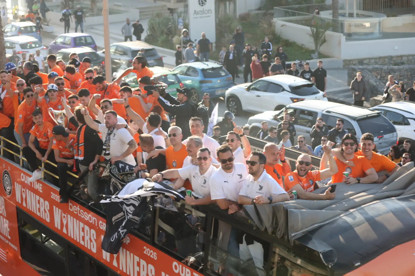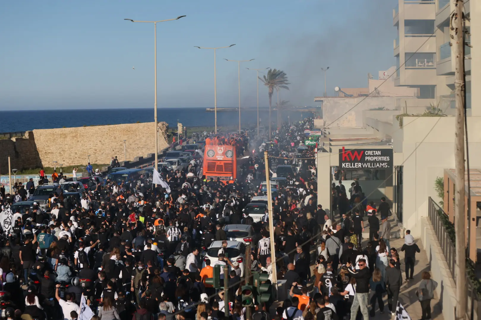 Και το πάρτι δεν έχει καν κορυφωθεί ακόμη… Το ανοιχτό λεωφορείο με τους θριαμβευτές δεν έχει διανύσει ούτε τα μισά της διαδρομής του, με τον παλμό να ανεβαίνει διαρκώς και την πόλη να ζει σε ρυθμούς μιας ιστορικής, μεγαλόπρεπης νύχτας.