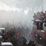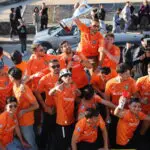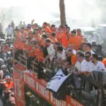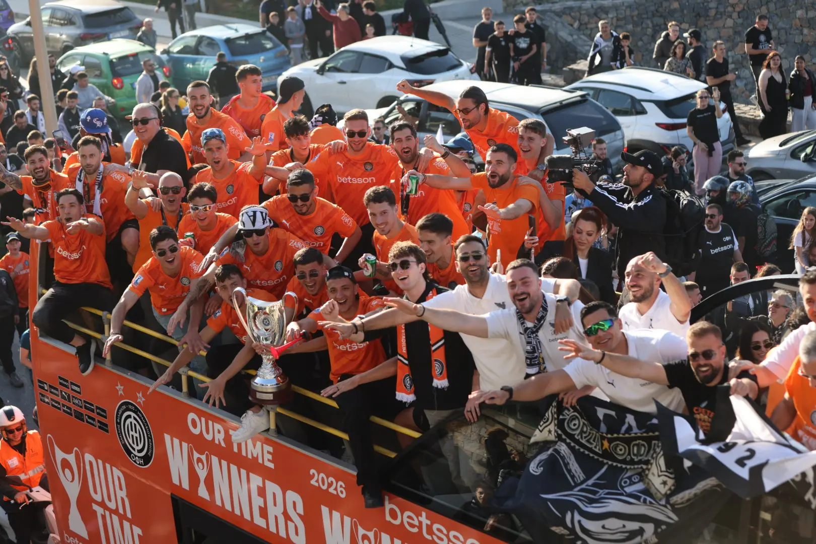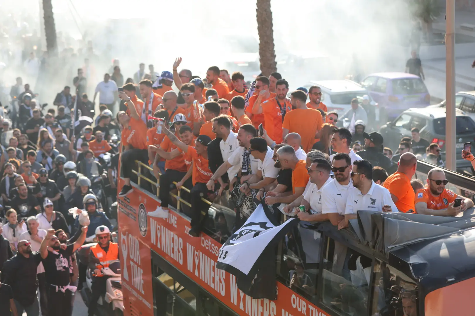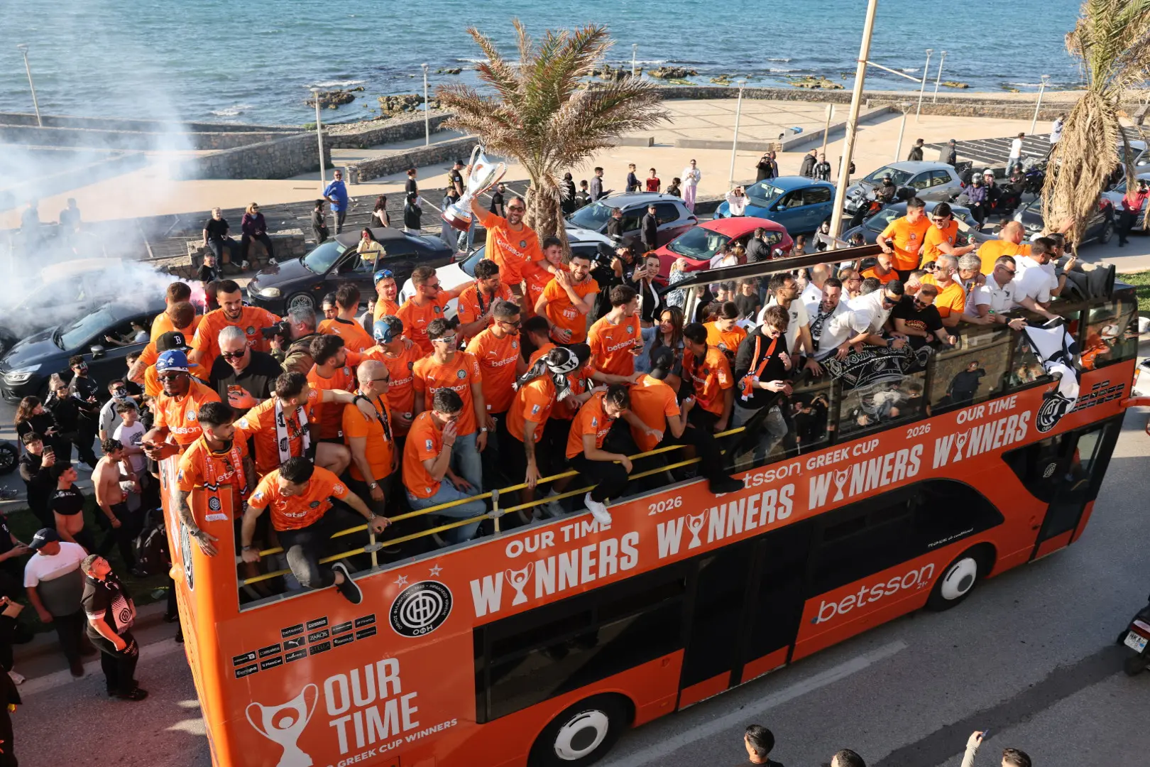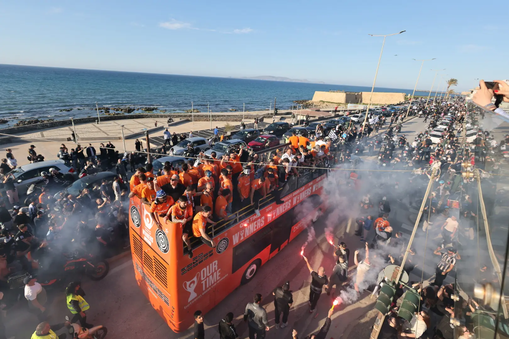 Και το πάρτι δεν έχει καν κορυφωθεί ακόμη… Το ανοιχτό λεωφορείο με τους θριαμβευτές δεν έχει διανύσει ούτε τα μισά της διαδρομής του, με τον παλμό να ανεβαίνει διαρκώς και την πόλη να ζει σε ρυθμούς μιας ιστορικής, μεγαλόπρεπης νύχτας.