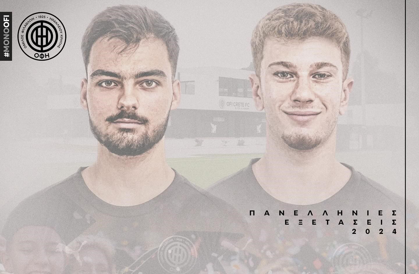 Τα δύο παιδιά της Κ19 που πέτυχαν τον στόχο τους στις Πανελλήνιες εξετάσεις συνεχάρη η ΠΑΕ ΟΦΗ.