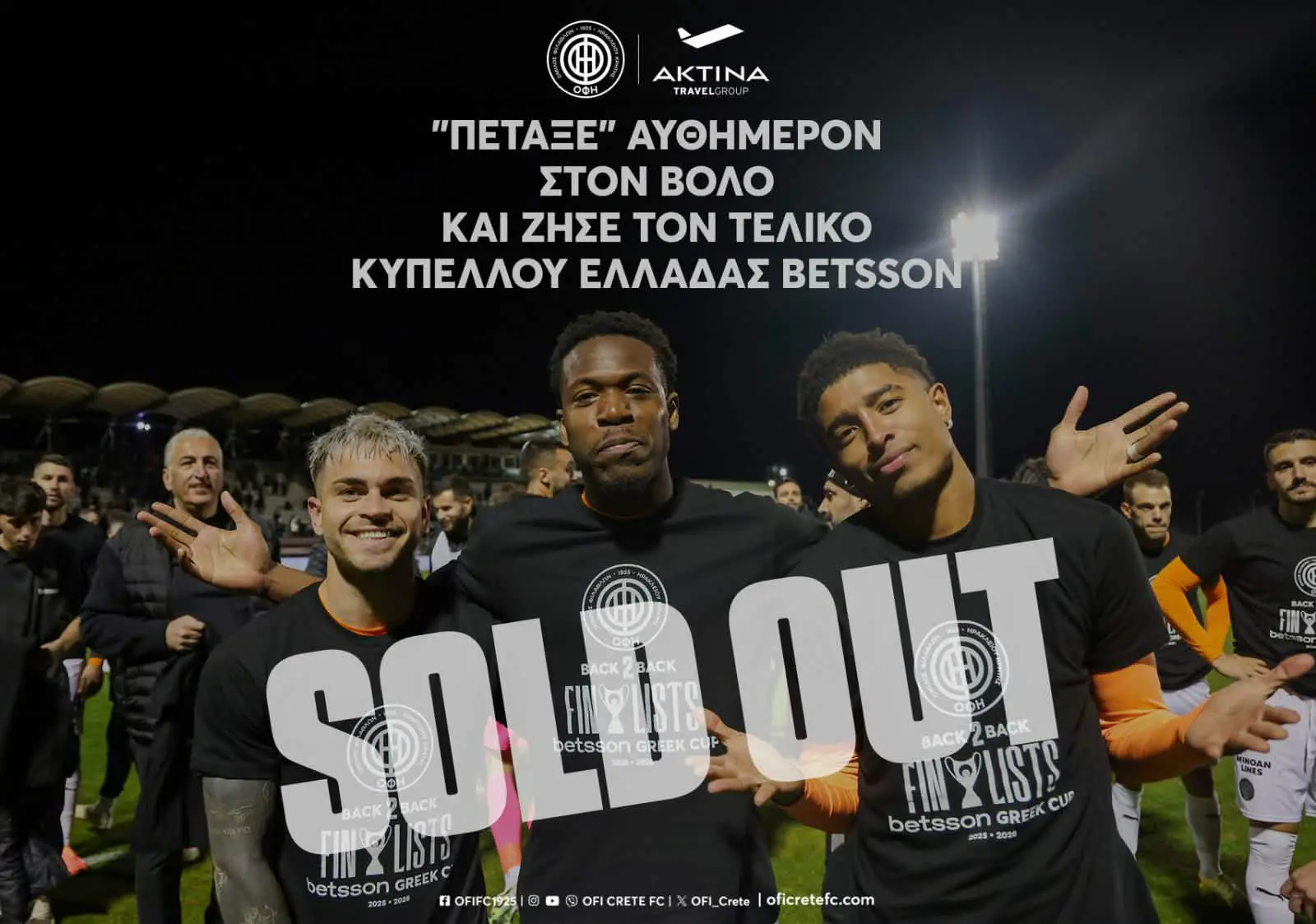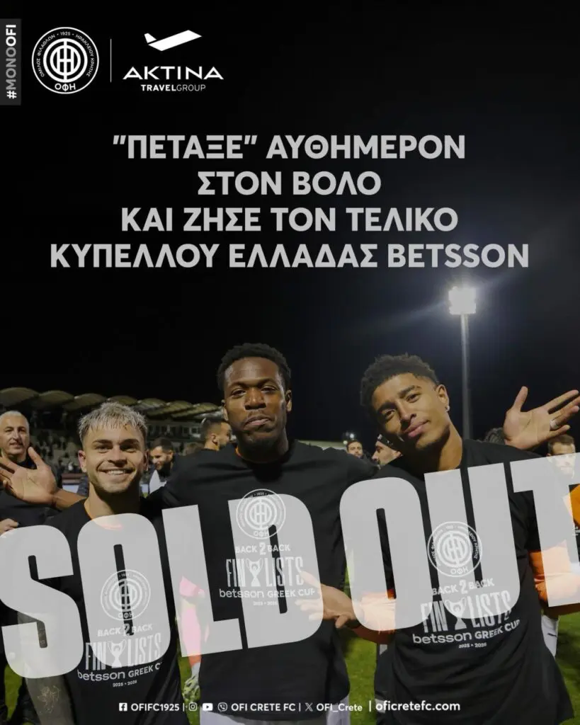 Όπως έκανε γνωστό η ΠΑΕ ΟΦΗ τη Δευτέρα το πρωί και στη δεύτερη πτήση τσάρτερ που έκλεισε η κρητική ομάδα για τις ανάγκες των φιλάθλων της για τον τελικό με τον ΠΑΟΚ στο Πανθεσσαλικό στις 25 Απριλίου έγινε sold out.