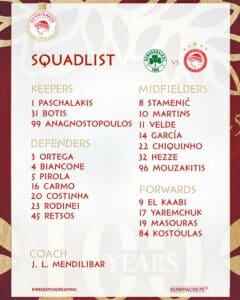 Ο Χοσέ Λουίς Μεντιλίμπαρ αποφάσισε να κάνει ροτέισον στην θέση του τερματοφύλακα στο ματς με τον Παναθηναϊκό και έτσι άφησε εκτός αποστολής τον Κωσταντίνο Τζολάκη, ο οποίος ήταν μονίμως βασικός μέχρι στιγμής.