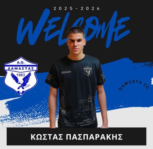 “Ο Α.Ο.Δαμάστας ανακοινώνει την απόκτηση του ταλαντούχου ποδοσφαιριστή Κώστα Πασπαράκη.